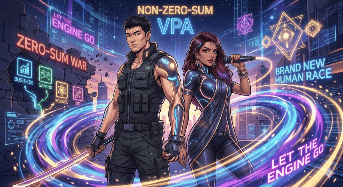 How did humanity evolve from violent survival to cooperative creation? “NON-ZERO-SUM” is an Epic Technopop Rap-Rock anthem that explores the depths of evolutionary psychology and brain science. We traded the zero-sum game of war for the non-zero-sum games of business, science, art, and heavy sports!